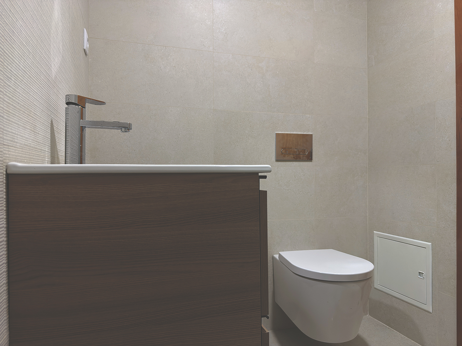 As demolições das instalações sanitárias e da cozinha deram o pontapé de saída, continuando por um reforço de tomadas e implementação de um sistema de rede estruturada de dados. Foram colocados pavimentos laminados nos quartos, e novos cerâmicos nas instalações sanitárias. Também foram substituídas todas as louças, bem como um novo sistema de abastecimento de águas e esgotos.